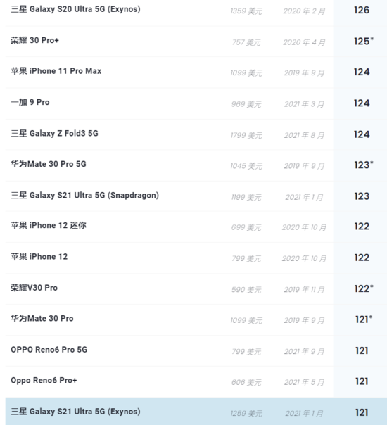 IT之家了解到,目前三星另一款旗舰机型 Galaxy S21 Ultra 影像得分为 123/121 分(骁龙版/Exynos 版),三星 Galaxy S20 Ultra(Exynos 版) 得分则为 126 分。