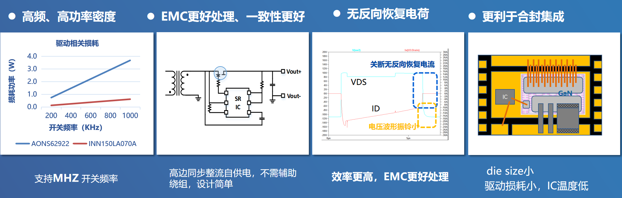 为此,英诺赛科推出了从65W到240W全系列All GaN解决方案,让功率密度和效率进一步提升。针对All GaN方案,英诺赛科推出了150V GaN芯片,与目前市面上最高标准的150V Si MOS相比,性能提升2-3倍。
