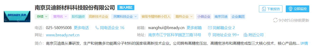 据天眼查显示,贝迪新材是从事研发、生产和销售多功能高分子材料的国家级高新技术企业。公司拥有高精密压出、高精密涂布和高精密成型三大核心技术,核心产品包括超薄导光膜、量子点膜、5G高频传输LCP膜、超薄散热膜、OLED、Mini LED半导体相关产品等。