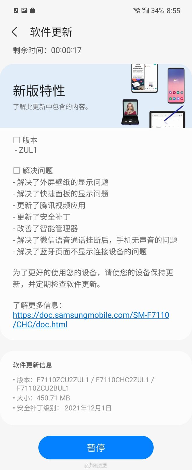 2021年12月07日 | 三星Galaxy Z Flip3折叠屏手机推ZUL1更新