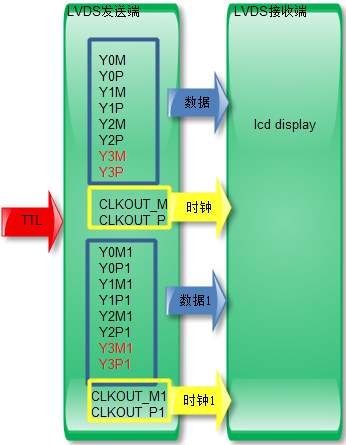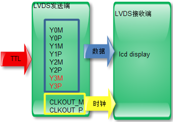 有4组差分线,3组信号线,一组时钟线。Y0M、Y0P、Y1M、Y1P、Y2M、Y2P、CLKOUT_M、CLKOUT_P。