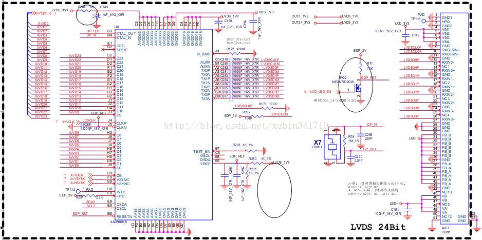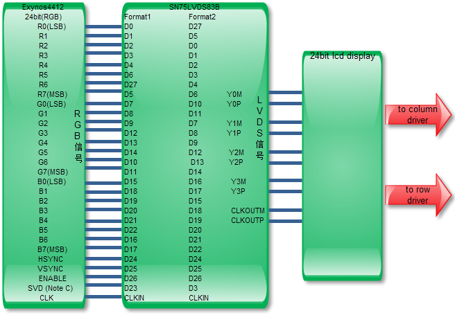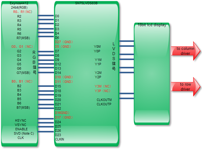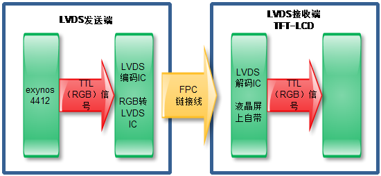 其实就是:把三星芯片输出的TTL(RGB)信号转换成LVDS差分信号输出的LCD接收端。