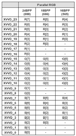 其实这部分要注意的是LCD的位数,你的屏是16bit、18bit、还是24bit的,不同位数的LCD有不同的硬件接线方法。如下图是samsung exynos4412提到的AP端,在不同位数输出时的接线图。