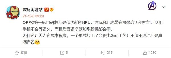 2021年12月08日 | OPPO自研芯片来袭!台积电6nm工艺,成本高