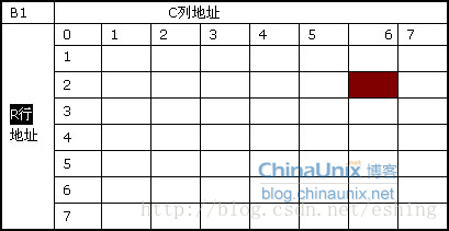 如果寻址命令是B1、R2、C6,就能确定地址是图中红格的位置