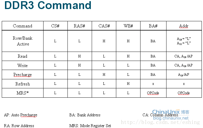 表11-2、DDR3命令表