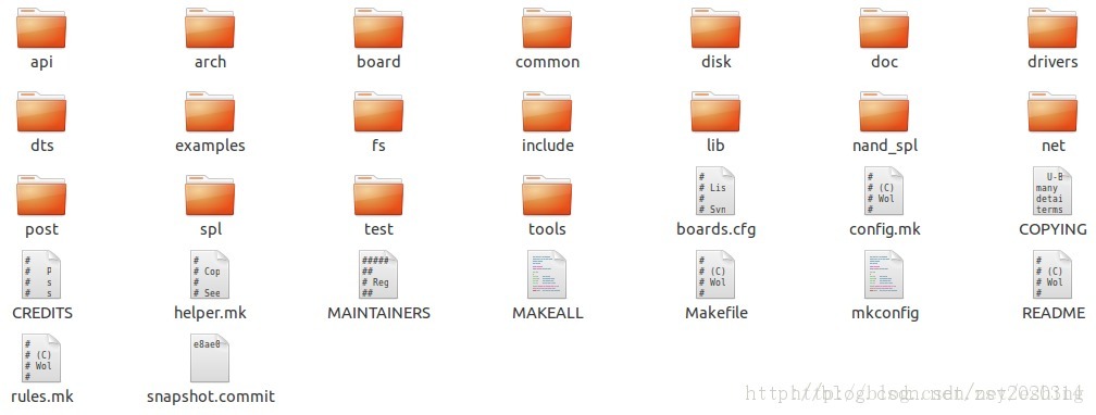 解压后我们看看新版本U-Boot的代码结构,如下图1-6所示。那么我们就来逐一介绍一下各个目录的功能和内容。如果需要更详细的目录介绍信息,请参阅U-Boot根目录下的README文件。
