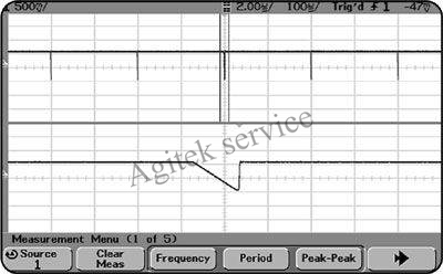 图 2: 示波器示出 1ms, 0.5% 占空比脉冲