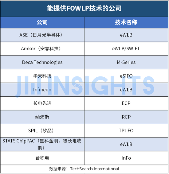 FOWLP市场还具有较大的不确定性,需要新的集成解决方案和高性能扇出型封装解决方案。但是,该市场具有很大的市场潜力。主流的封装厂和台积电都已经拥有自己的FOWLP技术,只是命名各有不同。