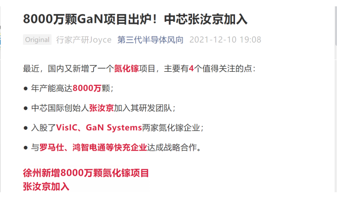 2021年12月11日 | 张汝京回应:没参与徐州GaN项目