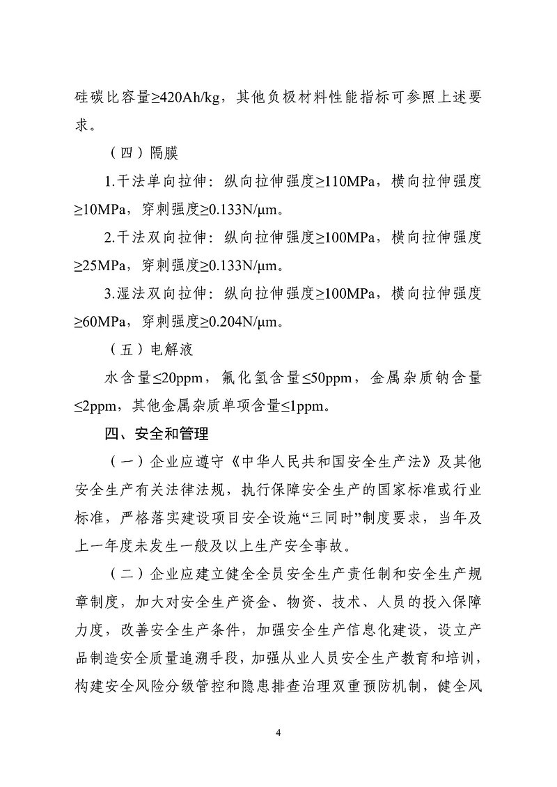 正极材料方面的相关要求也有所下降。如磷酸铁锂比容量由150Ah/kg降低至145Ah/kg,三元材料比容量由175Ah/kg降低至165Ah/kg,钴酸锂比容量由170Ah/kg降低至160Ah/kg,锰酸锂比容量≥115Ah/kg。