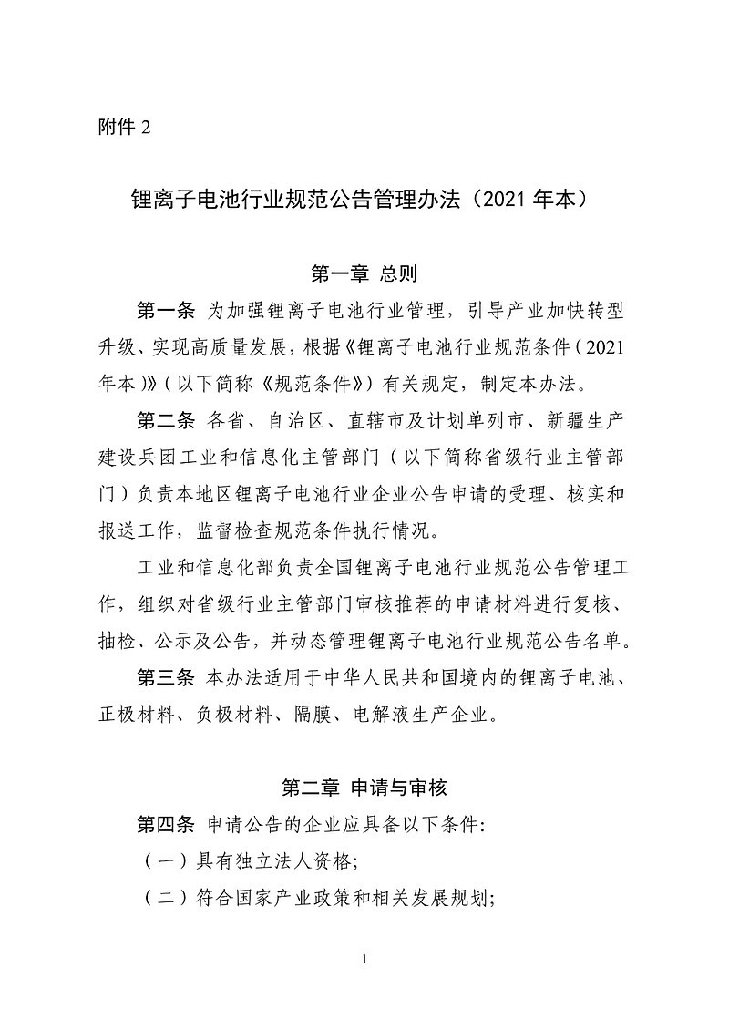 近日,为进一步加强锂离子电池行业管理,推动行业转型升级和技术进步,工信部发布《锂离子电池行业规范条件(2021年本)》和《锂离子电池行业规范公告管理办法(2021年本)》。该规范自2021年12月20日起实施!