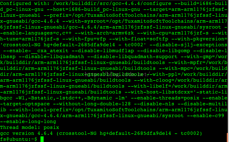 最后一行出现 gcc version 4.6.4即表示安装成功。