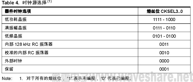 不同的时钟选项将在后续部分进行介绍。任何时钟源都需要足够高的Vcc来启动振荡器,并且还要有一个最小振荡周期以保证在开 始正常工作之前电源达到稳定电平 。