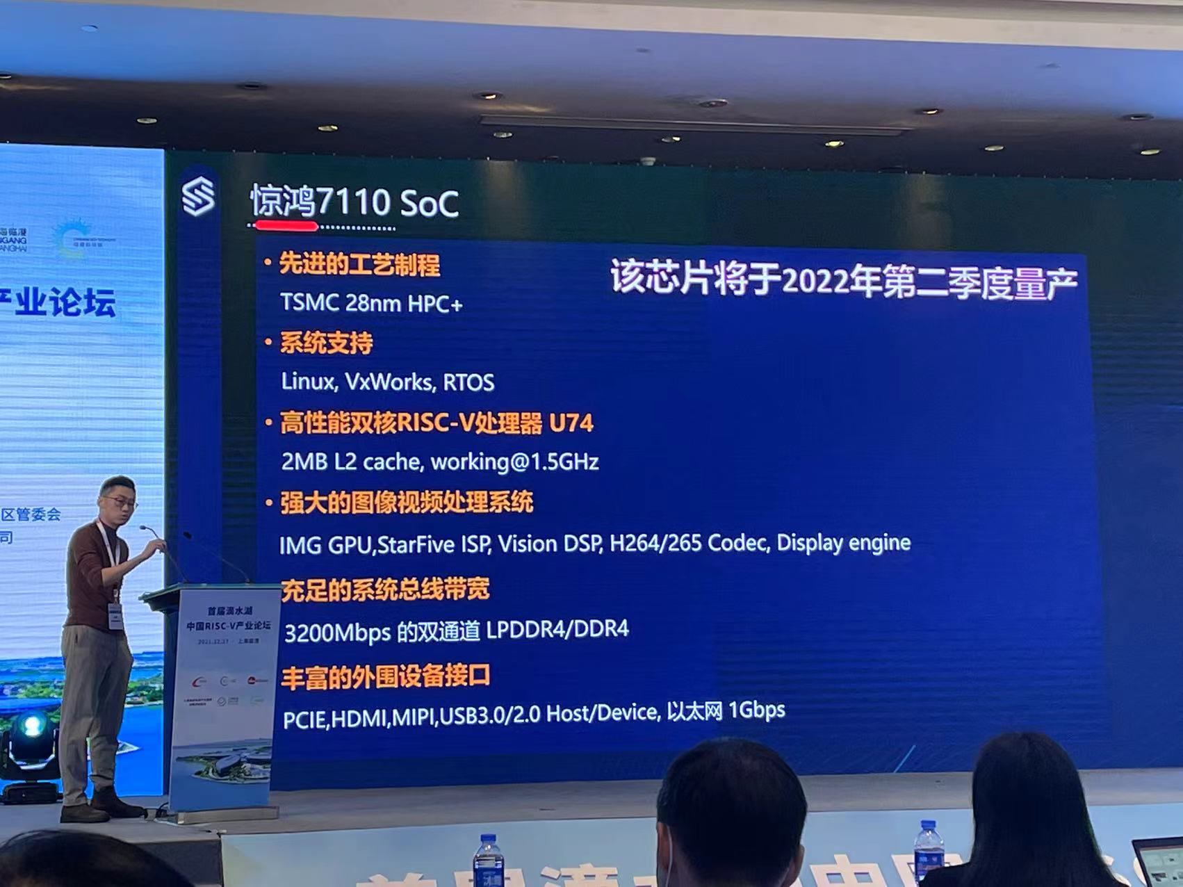 12月17日,首届滴水湖中国RISC-V产业论坛在上海临港举行。会上,赛昉科技资深产品经理 赵晶介绍了高性能RISC-V视觉处理平台 昉·惊鸿7110。