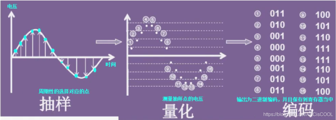 在计算机控制系统中,须经各种检测装置,以连续变化的电压或电流作为模拟量,随时提供被控制对象的有关参数(如速度、压力、温度等)而进行控制。计算机的输入必须是数字量,故需用模数转换器达到控制目的,过程有抽样、量化、编码(PCM编码,脉冲编码调制)。