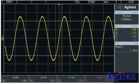 对于完全的模拟信号测量,您需要选择带宽比待测量正弦波最高频率高出至少三倍的示波器。信号频率为示波器带宽技术指标 1/3 时衰减最小。作为当前示波器的主要应用领域,数字应用需要多大的带宽? 根据实际经验,我们推荐您选用带宽比被测系统最快时钟速率至少高出五倍的示波器。例如,如果最高时钟速率为 100 MHz,您应该选择带宽为 500 MHz 或更高的示波器。如果满足这一条件,您的示波器将能够在信号衰减最小时捕获 5 次谐波。5 次谐波对确定数字信号的整体形状非常重要。