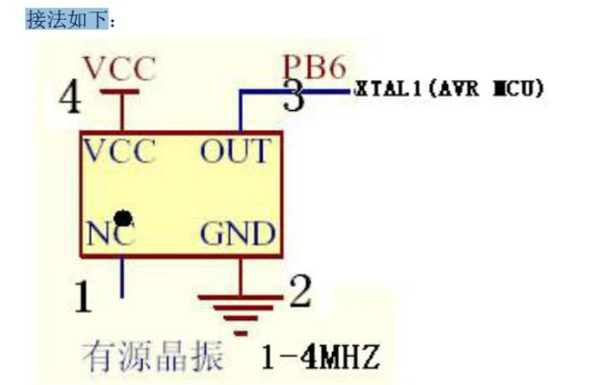一般来说,只要满足ISP的工作前提,再把XTAL1接到一个4MHz有源晶体的输出,基本是万试万灵的。 通过外加有源晶振的办法,让其恢复, 这个方法最可行。它可以恢复大部分熔丝位搞错的芯片。(重点推荐) 接法如下