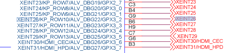 通过电路图我们可以看出,当按键按下去为低电平,松开为高电平;所以我们要检测XEINT26的状态,通过芯片手册找到GPX3_2的说明;