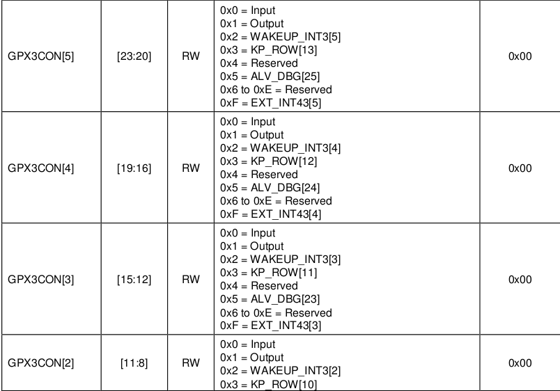 GPX3CON &= ~(0xffff << 8);