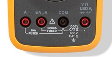 除了测量电流以外,其它所有时间里,红色表笔都要插在标注着“ΩV”等多种符号的孔里。