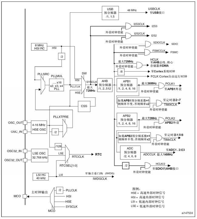 SYSCLK经过AHB预分频之后得到时钟叫APB总线时钟,即HCLK。片上的绝大部分外设的时钟都是经过HCLK分频得到。