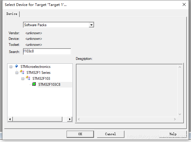 根据项目使用的CPU具体型号来选择选择芯片,小编这里使用STM32F103C8T6。