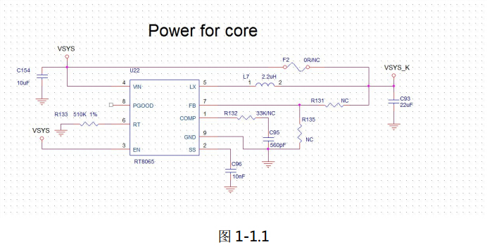 将 VSYS(5v)转成 VSYS_K(4v),然后使用 VSYS_K 给核心板供电