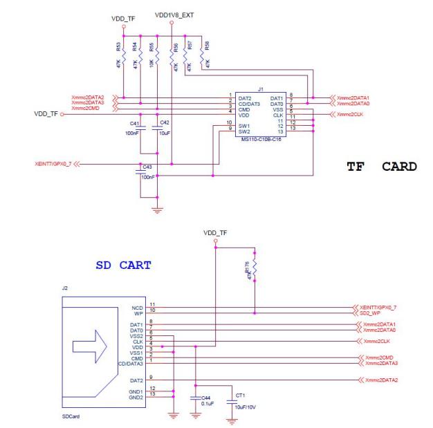 PCB 上 TF Card 和 SD Card 接口,如下图所示。