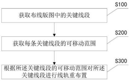 最后,根据关键线段的可移动范围对关键线段进行线轨重布置(S300)。关键线段的可移动范围是可放置关键线段的候选线轨的集合。通过线轨重布置,调整关键线段的当前放置位置,加大其与攻击方之间的距离,从而消除关键线段作为受害方所受到的串扰故障。若关键线段的可移动范围只有1个元素,则说明该关键线段只有一种重布置方式;若有多个元素,则对应有多种重布置方式。