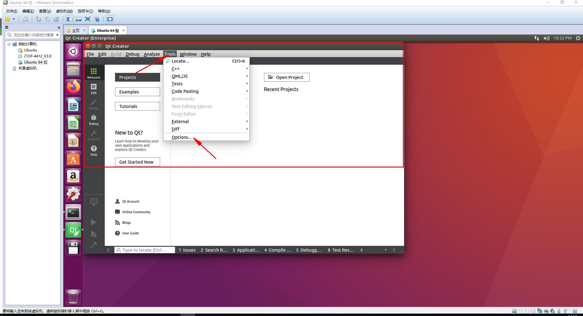 打开QT creator 点击Tools->Options