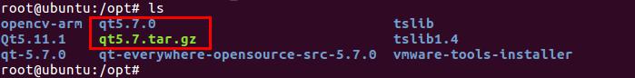 我们把编译好的QT库拷贝到ubuntu的/opt路径下,并解压,如下图所示: