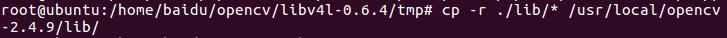 这样我们这个工程就创建完成了,在添加环境变量之前,我们把我们编译的libv4l-0.6.4库拷贝到/usr/local/opencv-2.4.9/lib/下面,命令如下: