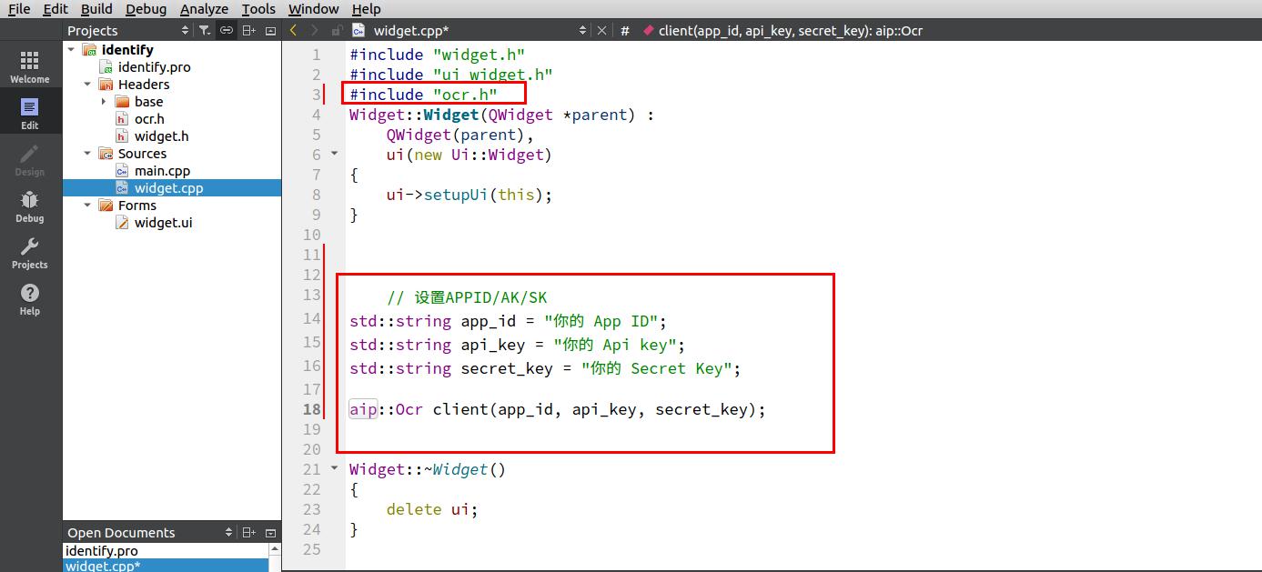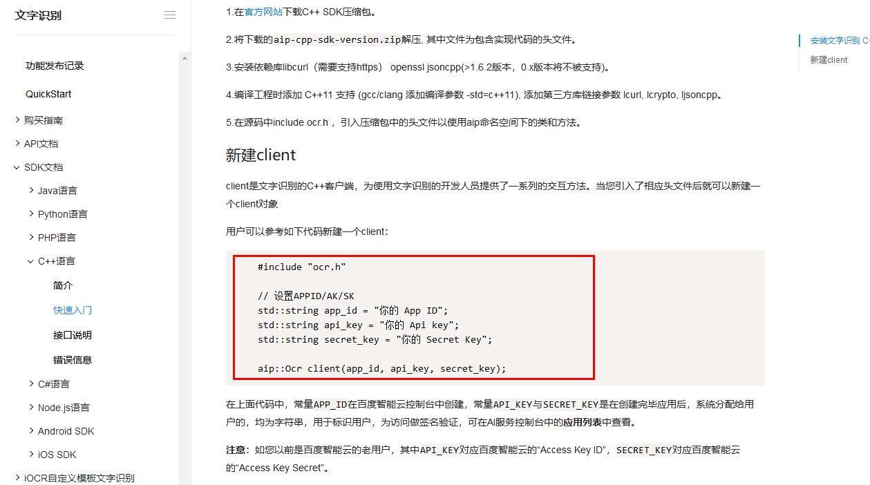 aip::Ocr client(app_id, api_key, secret_key);