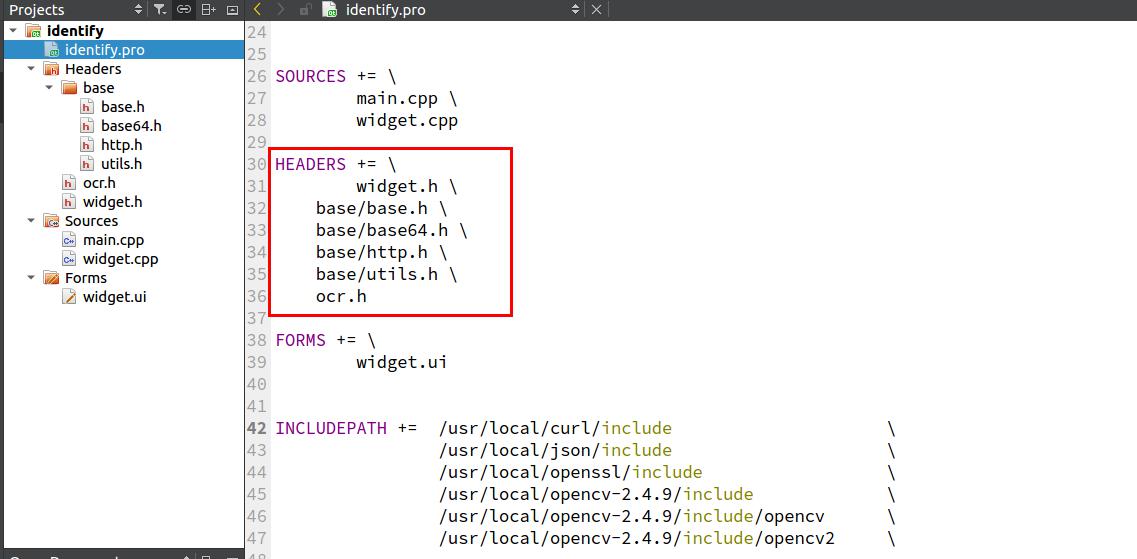 在我们拷贝到工程下面的SDK中找到百度AI提示需要的头文件,