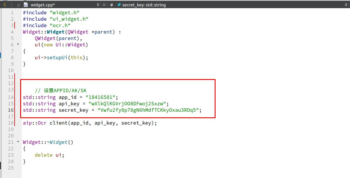std::string secret_key = "你的 Secret Key";