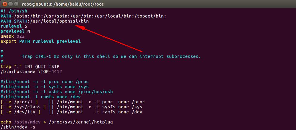 修改根文件系统的环境变量,输入命令vi ./etc/init.d/rcS ,如下图所示: