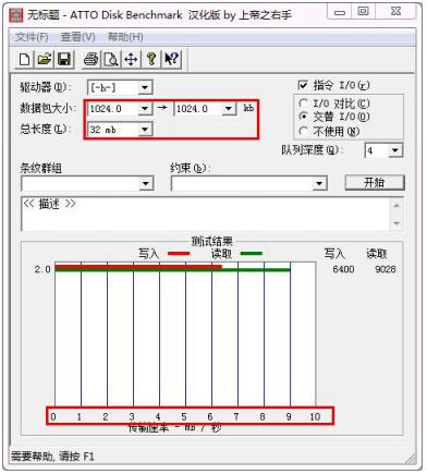 PC 软件(工具) 6-TF 卡测试工具"中可以下载测试软件“ATTO Disk bench32.exe”。