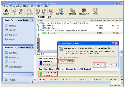 (4)右键选择 TF 卡的盘符,选择“删除分区”,弹出如下图所示对话框,勾选“下次不