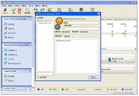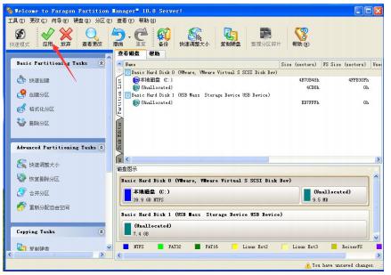 (9)然后点击软件右上角的“应用”按钮,开始分区,分区耗费时间比较长,而且分区到