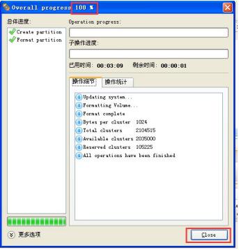 (6)格式化完成,如下图所示,单击“close”关闭对话框。