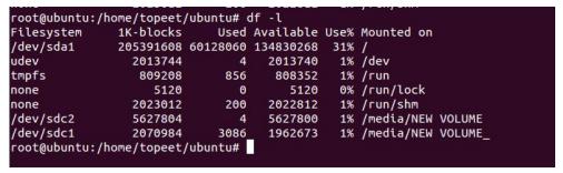 (2)如下图所示,使用命令“df -l”。