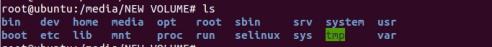 符名称和作者一样,则进入“/media/NEW VOLUME_/”目录。如下图所示,使用命令“cd