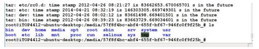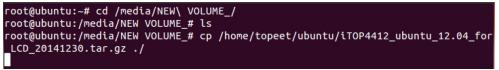 VOLUME/iTOP4412_ubuntu_12.04_for_LCD_20141230.tar.g -C ./”,如下图所示,命令在控