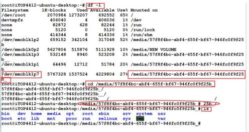 盘符,使用命令“cd /media/57f8f4bc-abf4-655f-bf67-946fc0f9f25b_/”进入盘符