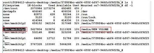 (5)最后需要将 Ubuntu 压缩包拷贝到 emmc 中。使用“df -l”命令查看盘符,如下图