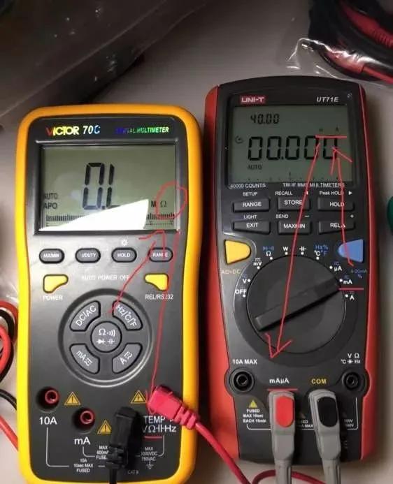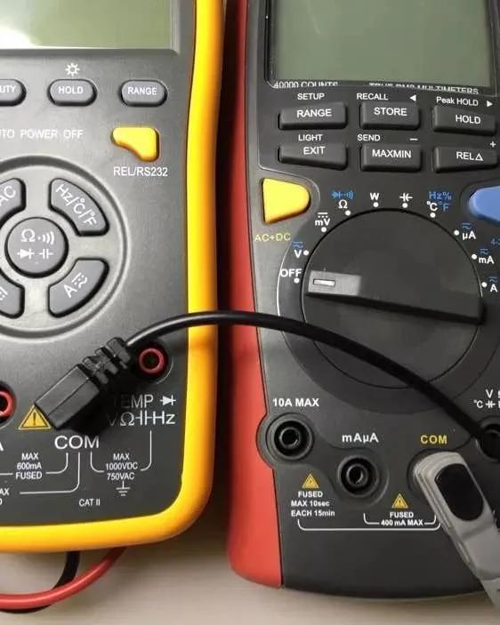 首先 黑笔永远接COM 孔,是不会有错的(比如下边两台万用表的接法