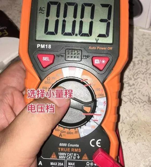档位选择小量程电压档。【要点V】我见过的每个万用表都能判别零火线,不一定要有特别的“火线判断”档位。只需要选择合适的小电压档 单表笔接触带测插孔就可以,至于用多小的档位,用交流电压还是直流电压档,不同的表不一样,高灵敏度(不要太便宜)的表可以使用交流档,不行再试直流档。只有一点务必注意【只需要用一只表针接触插孔!】此时因为黑笔悬空,形不成回路电流,设备和人身的安全都无需担心~