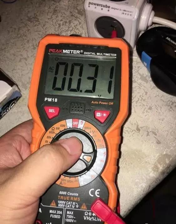 在开始交流电压测试前,先来看看几个重要事项:【要点IV】电压档皮实,不代表没有危险。危险来自于 1.脉冲高压电 2.在表笔还连接在带电电路时(正在测电压),不断开表笔,换档!(换档的过程中,拨盘开关*路过*电阻、通断、二极管、电容等档位,轻则烧表,重则烧电器烧人)到目前为止,脉冲高压电,在万用表这个档次的仪表上,还没见过能防护的,真要测需要购买或自制高压表笔;在测电压时,不断开和待测电路的电源连接,直接换挡,也是导致烧表的重要原因。这个问题恰恰是因为电压档太皮实,容易【大意疏忽】。现在有万用表已经做到全档位防烧,但规范还是应该尽量遵守的 【换档前,断开表笔连接】