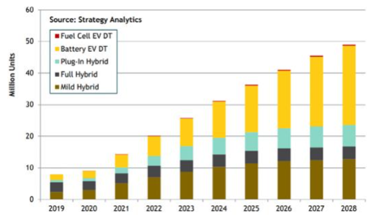 图 1:全球xEV市场趋势;来源:Strategy AnalyTIcs